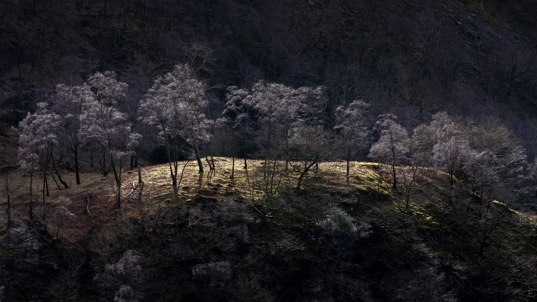 Licht op de boomtoppen van Borrowdale (200mm, f/8, 1/80s, iso64)